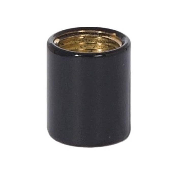 9/16 Inch tall glossy black finish brass lamp coupling.Tapped 1/8F. 15/32 inch diameter.