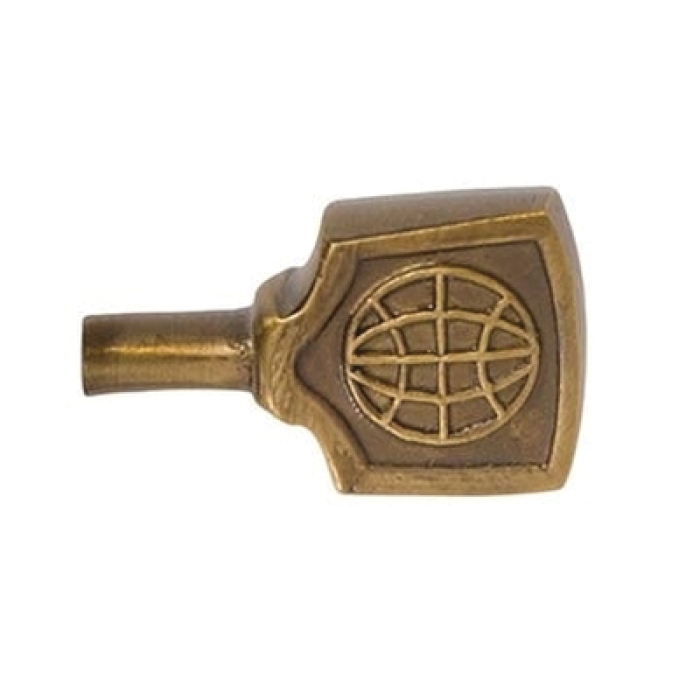 Solid brass industrial style flat key for an E26 turn knob medium base socket. It has an antique brass finish.