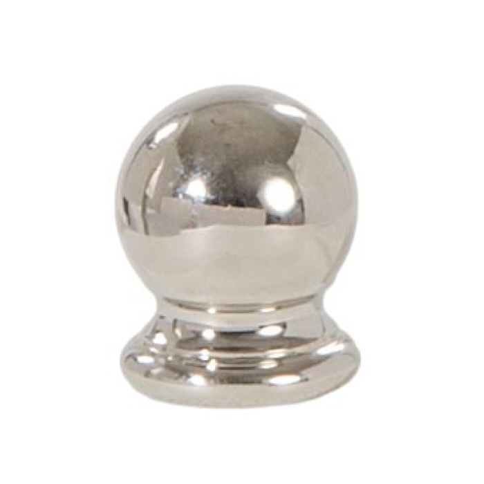 Ball style solid brass lamp finial, tapped 1/4-27F, 5/8" dia., 3/4" ht. Polished nickel finish.