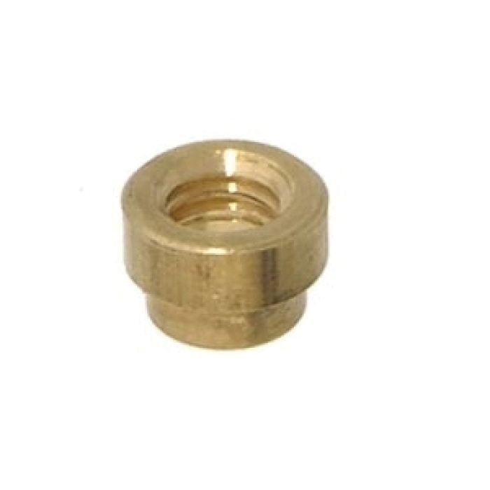 Eyelet bushing for shade holders or socket covers. 6/32F threads, unfinished brass.