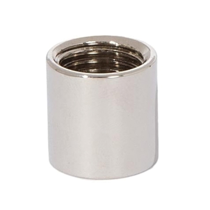 5⁄8" tall brass lamp coupling. 5⁄ 8" diameter.Tapped 1/4F. Polished nickel finish.