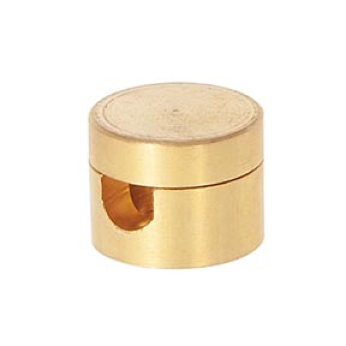 Unfinished brass SVT wire gripper swag ceiling strain relief. Provides strain relief for SVT type wire. Mount gripper to ceiling or wall, install wire and tighten cap. Mount has 3/16" mounting hole, cord hole 7mm I.D. (inside diameter) , 9/16" tall x 13/16" wide. Gripper mounts to ceiling or wall with #10 or #8 flat head wood screw.