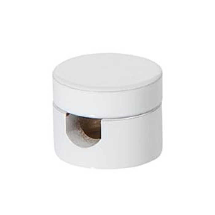 White finish SVT wire gripper swag ceiling strain relief. Provides strain relief for SVT type wire. Mount gripper to ceiling or wall, install wire and tighten cap. Gripper is made out of brass. Mount has 3/16 inch mounting hole, cord hole 7mm I.D. (inside diameter) , 9/16 inch tall and 13/16 inch wide. Gripper mounts to ceiling or wall with #10 or #8 flat head wood screw.