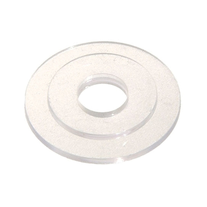 Clear Plastic Washer for Crystal Fixtures 1 1/4" O.D., Clear Plastic Washer for crystal fixtures/chandeliers and bobesches. 3/8" center hole dia., 1/16" thick, seats 7/8" opening