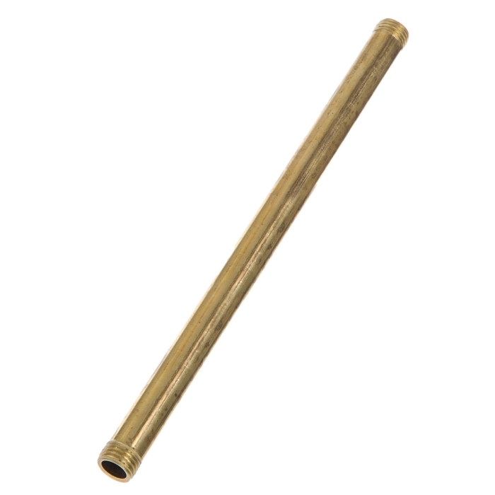Unfinished Brass, Fixture Stem / Lamp Pipe, 1/2" O.D., 1/4 IPS male thread with 1/4" length of thread on both ends. These fixture stems or lamp pipe are very useful in making lamp arms for industrial and mid-century modern style lamps and fixtures. The 1/4 IPS male thread is cut straight with no taper so that the threading "disappears" into the lamp body or cluster into which it is inserted, allowing you to make a neat, seamless connection with no exposed threading. 1/2" outside dia. fixture stem - lamp pipe is of good quality and made with a heavy wall thickness. Unfinished brass.