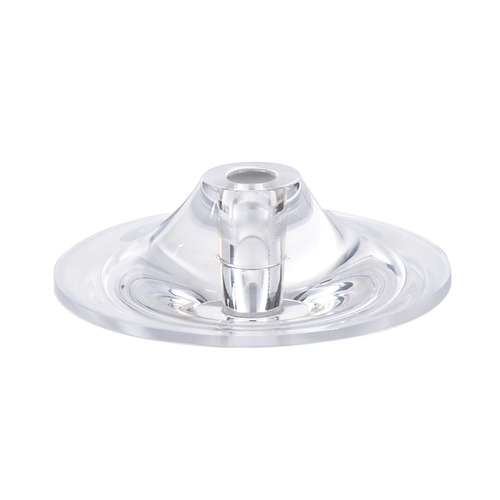 Clear Acrylic Vase Caps, 1 1/2" to 2 1/2" diameter x .70" height, .438" diameter center hole. All surfaces are polished clear, top diameter 3/4". These new vase caps offer those building custom lighting, or someone just restoring a fine old lamp, a fresh option.
