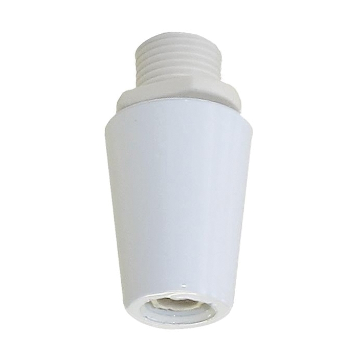 White Cord Grip Bushings for Twisted Pair & SVT-2 Plastic or Cloth Covered Cord 1/8 IP lamp cord grip bushing designed for plastic or cloth covered lamp cord. Great for pendant lighting where the cord attaches at the canopy, 1-1/8" long, 5/8" diameter. Bushing with metal body and plastic grip. Cord entrance hole I.D. =.29"