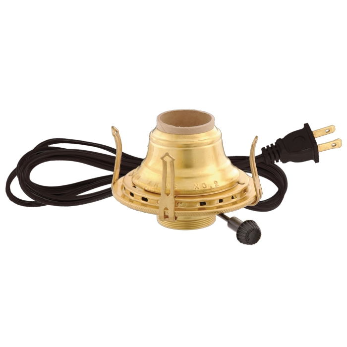 No. 2 Queen Anne Electrified Burner. Solid brass burner wired with U.L. listed parts & best quality 6 ft. white lamp cord. Accepts a 3" base chimney.