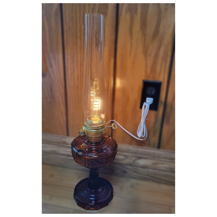 Solid Brass Electrified Burner* designed to fit Aladdin® Brand lamps and many B & P Lamp Supply lamps, assembled with U.L. listed components. 2" coarse thread base will fit most glass model lamps. Accepts a 2 5/8" regular or twist lock chimney. 6 ft. cord. Your choice of: