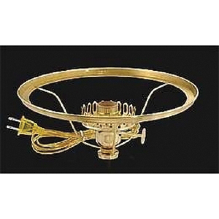 No. 2 size Old Style, Solid brass Gallery and 7" Brass Shade Ring. Wired with high quality U.L. listed parts with a 6' white (side exit) cord. Accepts a 3" base chimney.