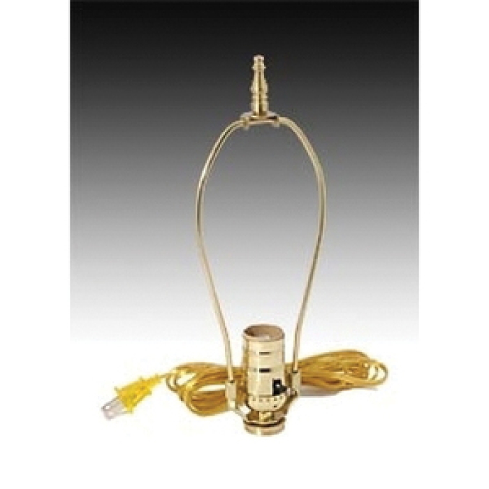 No. 2 size Adapter Kit with U.L. listed solid brass push-thru socket, turned brass base, 9†harp, and high quality 8 ft. clear gold lamp cord.