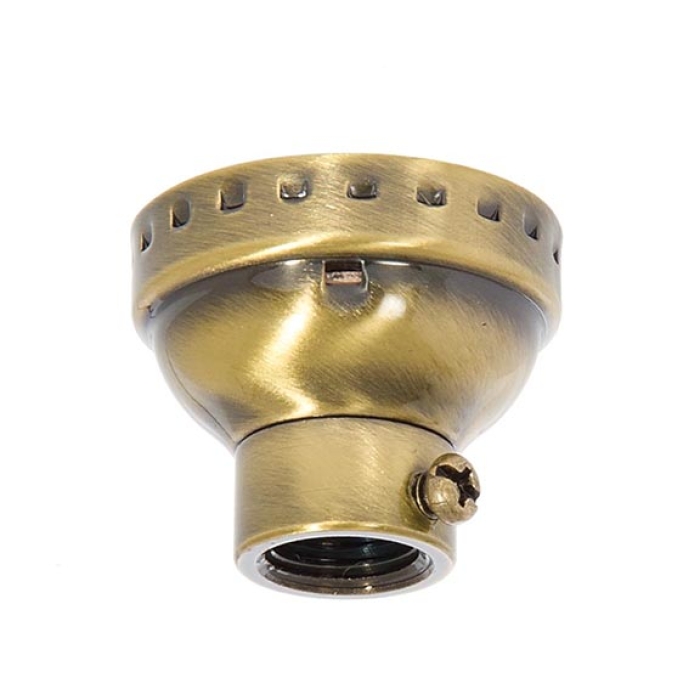 Antique brass finish solid brass socket cap with set screw. Use with E26 medium base electrolier socket interiors. 1/4 IP.