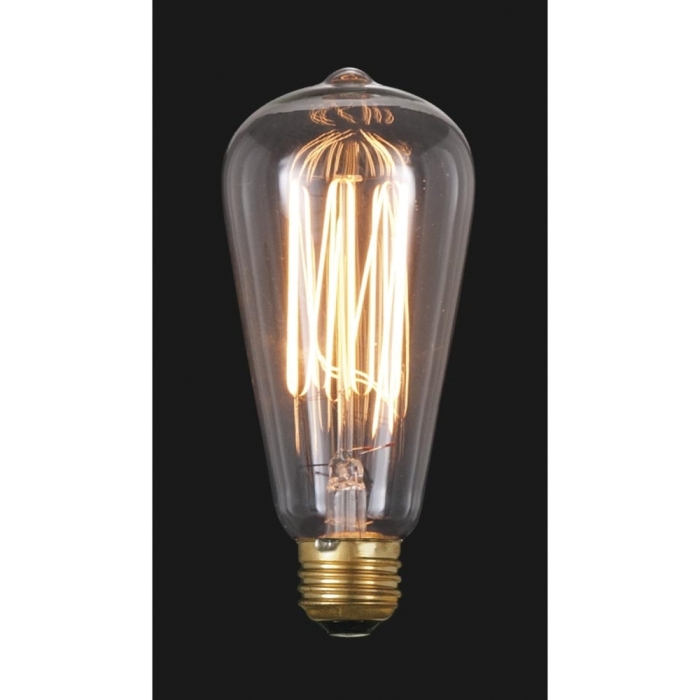 Edison (standard size) Base "Squirrel Cage" tungsten filament historic, antique light bulb reproduction. Measures 5 1/4 inch by 2 1/2 inch diameter. 60 watt, 130 volt.