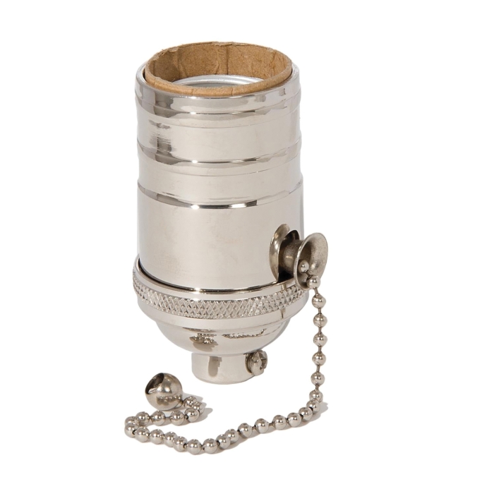 Heavy Turned Brass Socket with NICKEL PLATED Finish, On/Off Pull Chain function, NO UNO threads, 1/8IP cap with set screw, 660w, 250v.