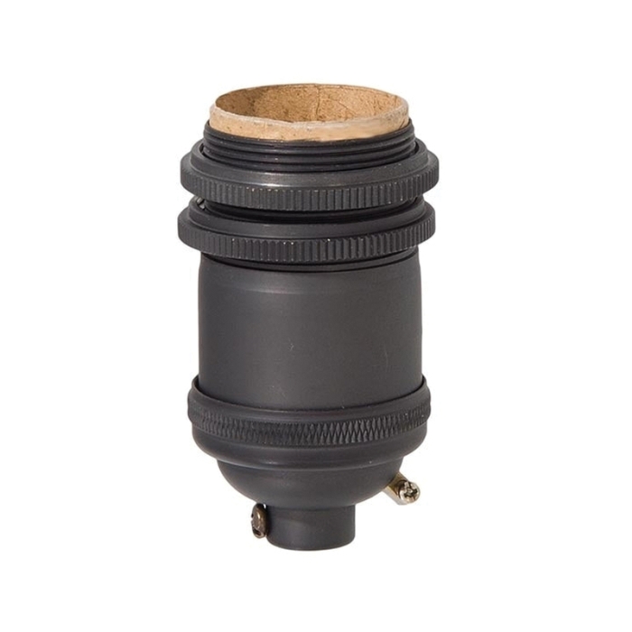 Sunlite brand, tall, keyless, heavy turned brass socket with ground screw terminal. Antique bronze finish.Socket comes with set screw and extra long UNO threads. E-26 (medium/standard) size socket. Socket has 1/8IP cap and comes with 2 UNO rings. 660W-250V. U.L. listed.