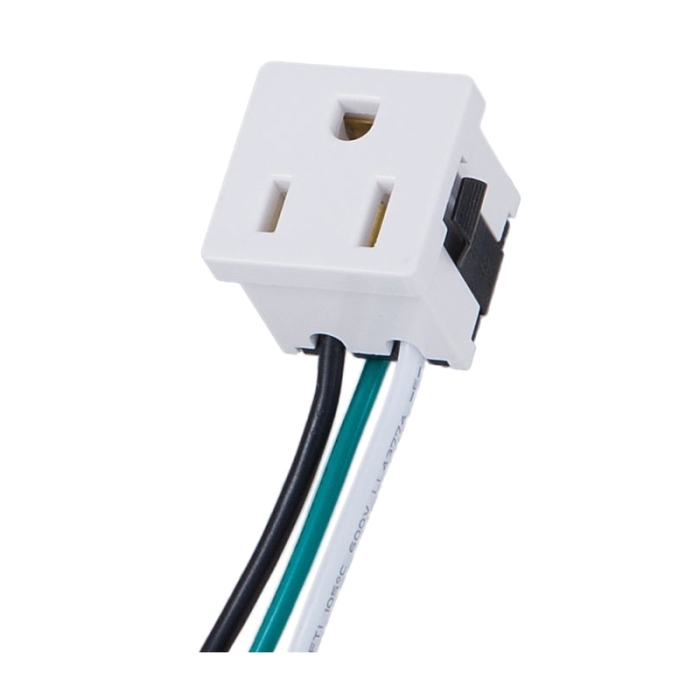 3-wire, 2 pole snap in convenience outlet, opening size 1 inch x 1 inch x 1 inch, rated 15A-125V, white