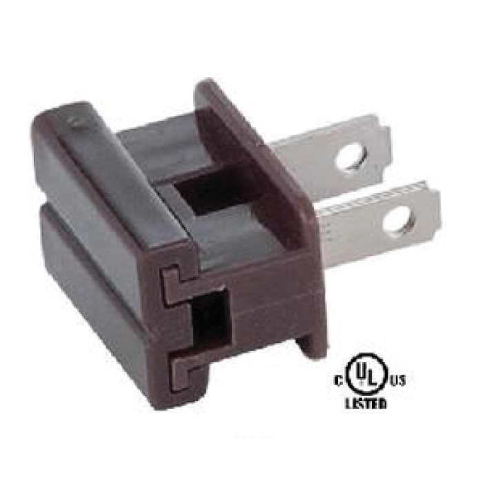 SPT-2 Brown, Slide-On Lamp Plugs For 18/2 Lamp Cord - 8A-125V with Polarized Blades. U.L Listed.