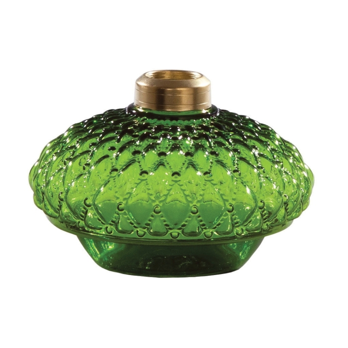 Dark Green Diamond Quilted Pattern Glass Bracket Lamp Font, hand blown glass, 6 1/2 inch diameter, 4 1/2 inch height with solid brass #2 collar. Bottom measures 5 1/2 inch outside diameter by 1 1/8 inch deep.