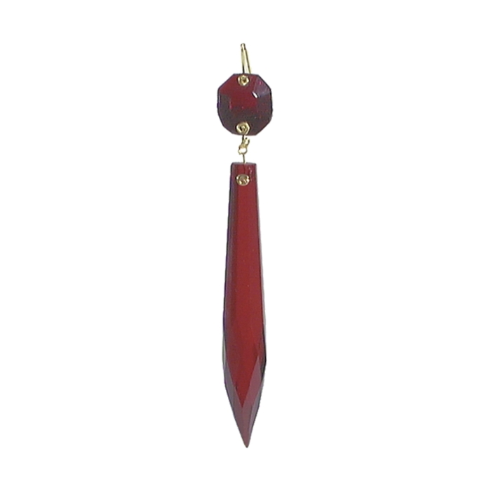 3" (4-1/4" overall length with top bead) Ruby U-Drop crystal prism, brass pin