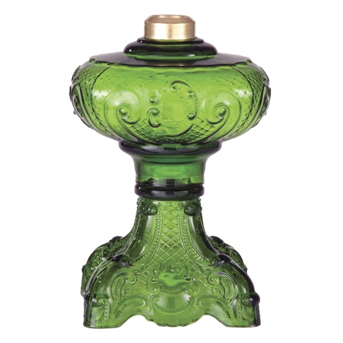 - Dark Green Glass "Princess Feather" Oil Lamp Font is an exact replica of a Victorian era kerosene lamp