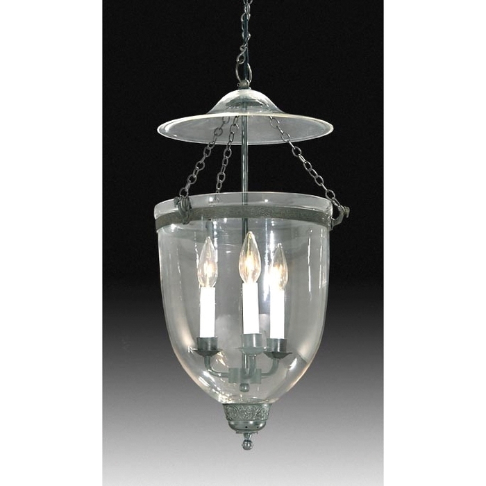 Medium Hall Lantern with glass dome diameter of 10 1/2" x 11 1/2" deep and adjustable ceiling drop from 31" to 47". This size is recommended for 9' to 10' ceilings.