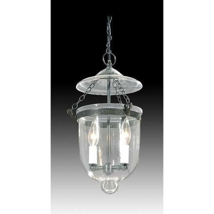 Tiny Hall Lantern with Clear, Uncut Glass Dome, 7" x 9 1/4" deep glass dome, adjustable drop from 20 1/2" to 39". Lantern comes complete with cast brass canopy & chain with matching finish. This size recommended for 8 foot and 9 foot ceilings, Electric. UL Listed.