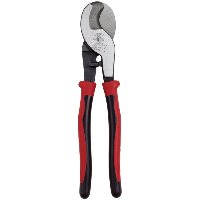 Cut aluminum, copper and communications cable with the Klein Tools Journeyman High-Leverage Cable Cutter. Cable-gripping shear-type jaws and a high-leverage design provide exceptional cutting capability. Through-hardened, not case-hardened, cutting surfaces are longer-lasting.