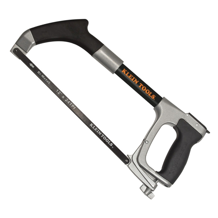 Adjustable blade tension up to 30,000 PSI for fast, precise cuts. - Soft touch grips. - Alternative 45 degree mounting for flush cutting. - Front mount for reciprocating saw blades. - Convenient blade storage in handle. - Includes 12" (305 mm) x 24 TPI bi-metal hack saw blade and 6" (152 mm) x 24 TIP bi-metal reciprocating saw blade.