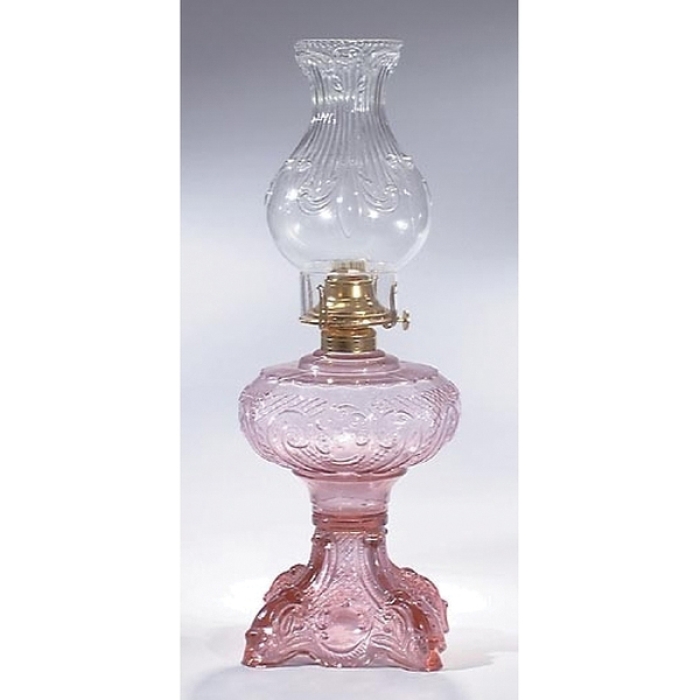 Princess Feather Pattern Complete Kerosene Lamp, Choice of Color for Glass Base (67500C)