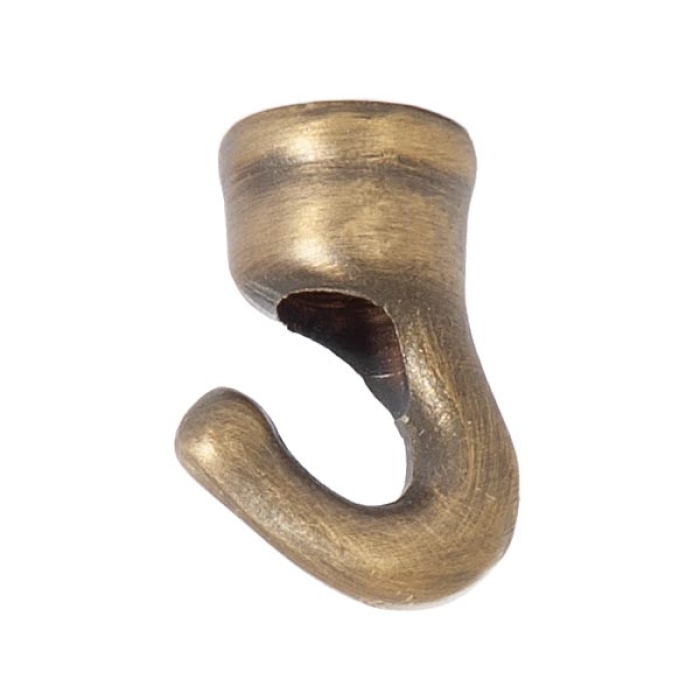 1-1/8" Tall Cast Brass Baby Hook with Wire Way, 1/8F Tap, Antique Brass (21232A)